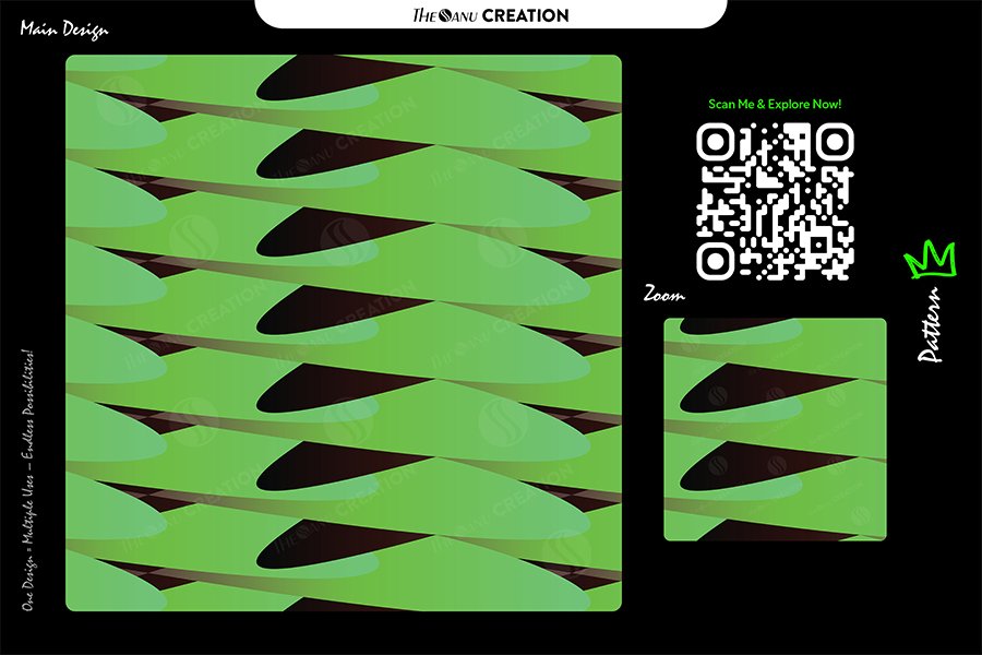A seamless abstract pattern featuring layered lime green flowing forms with bold dark contrast and smooth directional movement. Designed to deliver high visual energy, structure, and clean repetition across modern digital and print design systems.