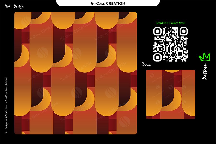 This seamless abstract design presents rounded amber loop elements layered over a deep red-toned base, forming a balanced grid with smooth vertical and horizontal continuity. The warm gradient transitions enhance depth and dimension, while the repeating structure creates a confident and contemporary visual rhythm.