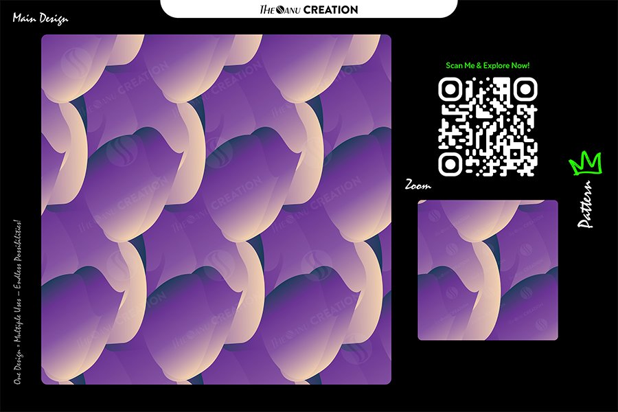 This premium seamless abstract design presents fluid wave-inspired forms in rich amethyst purple blended with soft cream and subtle gradient highlights. The smooth curvature and layered motion create a gentle sense of rhythm and depth, resulting in a sophisticated aesthetic that feels modern, elegant, and visually calming.