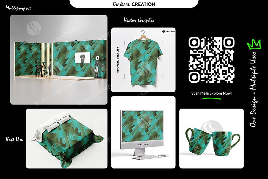 Introducing Aqua Forest Flow Pattern by THE SANU CREATION — a modern abstract composition built with fluid organic shapes and a refined gradient blend of aqua blue and deep forest green tones. The design delivers a natural yet contemporary feel, combining smooth motion with controlled depth.