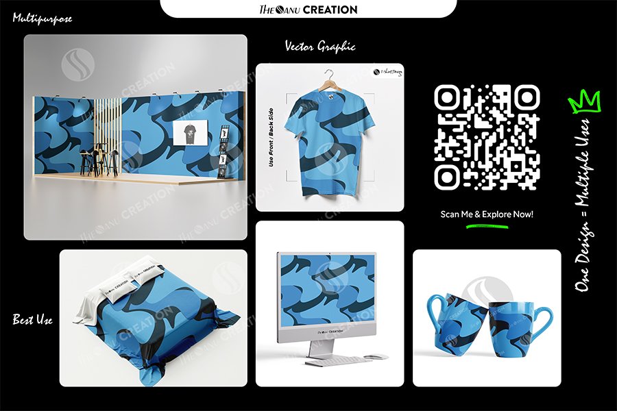 Introducing Blue Fluid Motion Pattern Design by THE SANU CREATION — a refined surface system developed with smooth flowing forms and balanced tonal layering. The design reflects movement, clarity, and modern simplicity through organic curves and structured repetition.