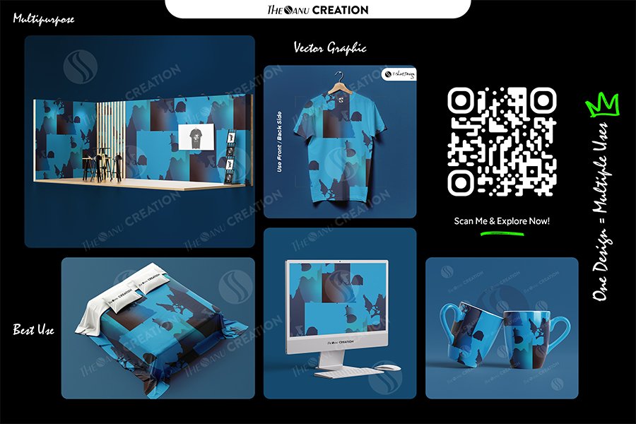 Introducing Blue & Navy Gradient Abstract Block Pattern by THE SANU CREATION — a modern abstract design fusing vibrant blue tones with deep navy gradients. Its bold contrasts and layered abstract forms create a dynamic and futuristic visual style.
