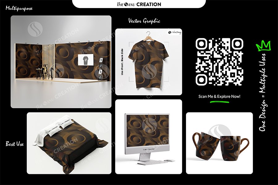 The flowing orbital layering builds a sense of depth and premium warmth, forming a contemporary abstract pattern suited for refined, impact-driven brand environments.