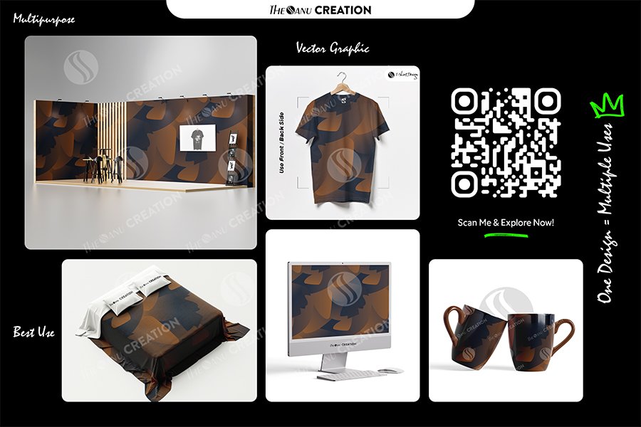 Introducing Burnt Orange Shadow Flow Pattern Design by THE SANU CREATION — a premium abstract surface system defined by fluid organic forms, warm burnt orange tones, and deep shadow contrasts. The composition blends bold curvature with smooth gradient transitions, creating a dynamic and contemporary visual identity.