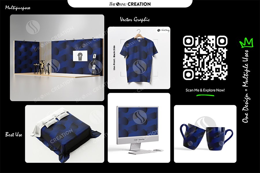 Designed for flawless repetition, this vector pattern performs seamlessly across both digital and print formats. It integrates naturally into branding systems, packaging designs, editorial layouts, UI backgrounds, merchandise surfaces, and large-scale visuals. The strong blue palette communicates stability, trust, and modern sophistication, making it suitable for both corporate and creative design environments.