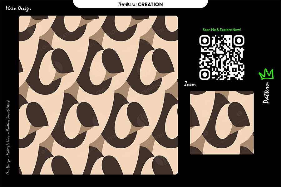 A seamless abstract surface featuring flowing cocoa brown loop forms layered over a soft beige foundation. Designed for contemporary textiles, interior styling, packaging systems, and branding applications requiring warm neutral balance with structured visual rhythm.