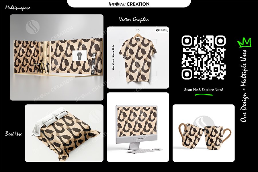 The warm neutral palette delivers versatility and sophistication, making the design suitable for both lifestyle branding and interior-focused applications. The balanced spacing ensures smooth repetition without visual congestion.