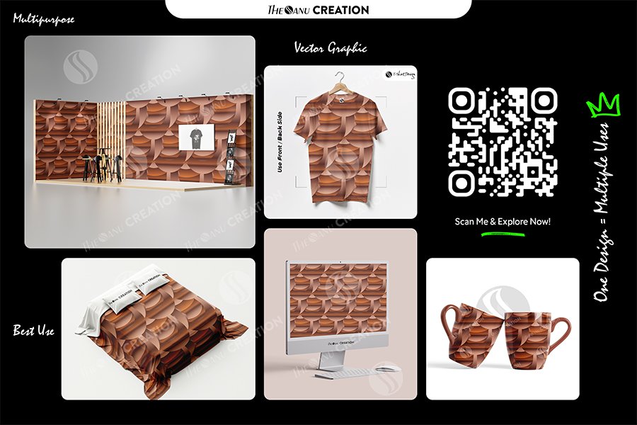 Introducing Copper Arc Weave Pattern by THE SANU CREATION — a premium seamless abstract design built around rhythmic curved layers and rich metallic warmth.