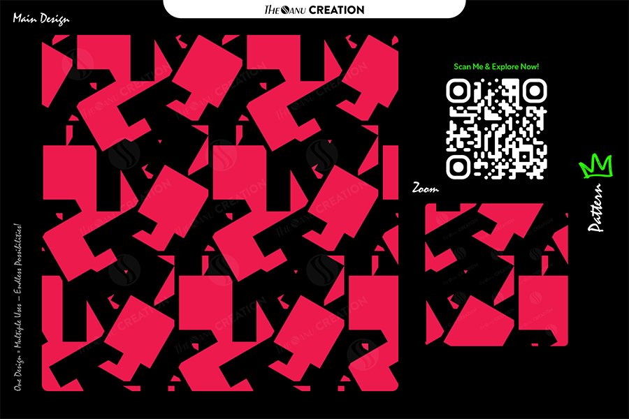 Introducing Crimson Block Motion by THE SANU CREATION — a dynamic abstract pattern built using angular block silhouettes and sharp geometric cuts. The bold crimson elements stand out powerfully against a deep black base, creating a strong visual rhythm and a modern energetic aesthetic.