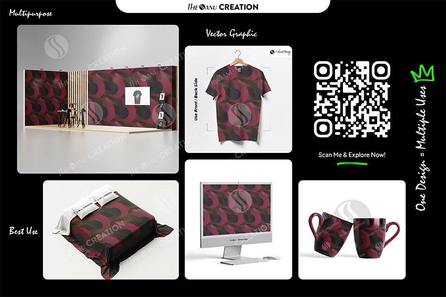 Introducing Crimson Wave Flow Pattern Design by THE SANU CREATION — a premium abstract surface system defined by flowing wave-like structures, rich crimson tones, and smooth gradient layering. The design captures a dynamic visual rhythm, blending bold curvature with controlled depth to create a strong and modern aesthetic.