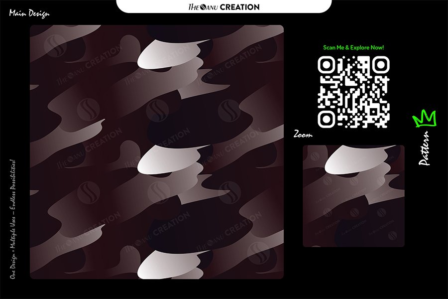 This seamless abstract vector design reimagines camouflage through smooth, fluid contours and layered organic forms. The pattern moves naturally across the surface, creating rhythm, depth, and a refined sense of motion while maintaining a strong visual presence.
