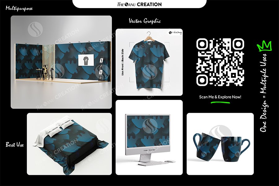 Introducing Deep Aqua Organic Flow Pattern Design by THE SANU CREATION — a premium abstract surface system defined by fluid organic forms, deep aqua tones, and smooth gradient depth. The composition merges natural movement with structured repetition, creating a dynamic yet balanced visual identity.
