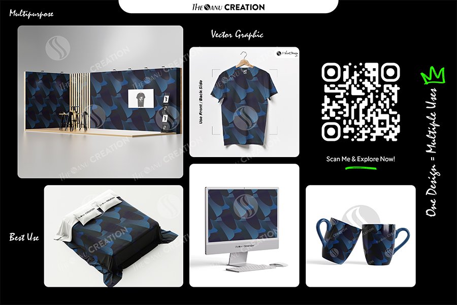 Introducing Deep Blue Flow Pattern Design by THE SANU CREATION — a premium abstract surface system defined by smooth layered forms, deep blue tonal transitions, and structured visual rhythm. The interplay of darker and lighter blue gradients builds a balanced composition that feels both modern and refined.