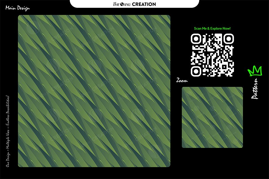 Introducing Diagonal Leaf-Inspired Geometric Striped Pattern by THE SANU CREATION — a refined artwork crafted from angular, leaf-like geometric strokes arranged in a clean diagonal rhythm. The layered green tones create a natural yet modern aesthetic, offering a visually rich and contemporary design presence.