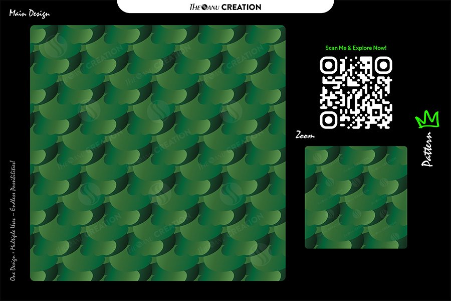 This premium seamless abstract design showcases repeating scale-like forms in deep emerald, forest green, and subtle gradient tones. The layered structure creates a sense of organic rhythm, depth, and visual continuity, resulting in a refined aesthetic inspired by natural patterns while maintaining a modern, professional finish.