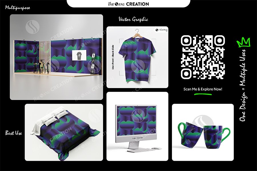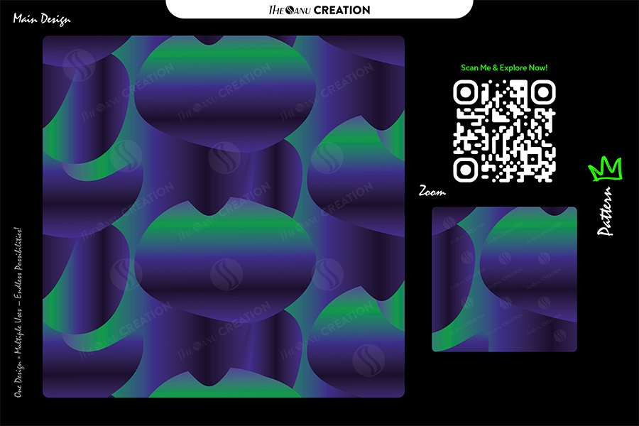 Introducing Emerald Wave Depth Pattern by THE SANU CREATION — a powerful abstract composition defined by smooth rounded forms and deep gradient transitions between rich purple and vibrant emerald tones. The design delivers a bold yet controlled visual presence with a strong sense of depth and flow.