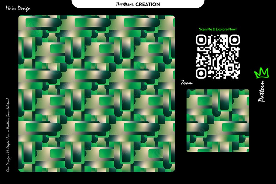 Introducing Emerald Weave Gradient Pattern by THE SANU CREATION — a dynamic abstract vector artwork created with interwoven rounded blocks, soft gradient transitions, and a bold emerald-to-cream colour palette. The layered weaving effect adds dimensional depth, producing a modern and visually engaging aesthetic ideal for professional creative work.