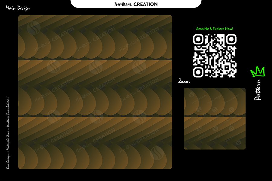 Introducing Golden Drift Pattern Design by THE SANU CREATION — a premium abstract surface system built with layered curved forms and directional diagonal flow. The combination of warm golden tones and deep olive gradients creates a visually rich composition that balances motion with structural precision.