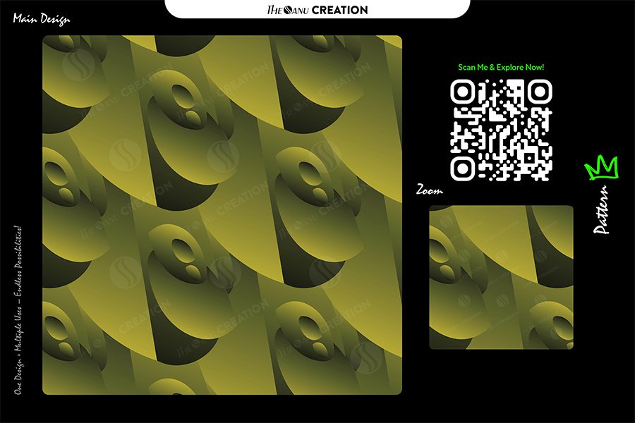 This seamless surface presents sculpted oval and curved forms layered diagonally across a golden olive base. Subtle gradient transitions enhance dimensional depth, giving the pattern a refined three-dimensional presence while preserving clean repeat precision.
