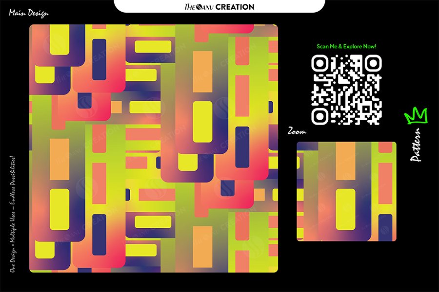 A vibrant luminous abstract pattern crafted with rounded block segments, smooth neon gradients, and dynamic lime–orange–red–purple transitions. Perfect for creators seeking expressive, modern, and highly versatile visuals for branding, packaging, digital graphics, textiles, merchandise, and bold contemporary creative layouts.