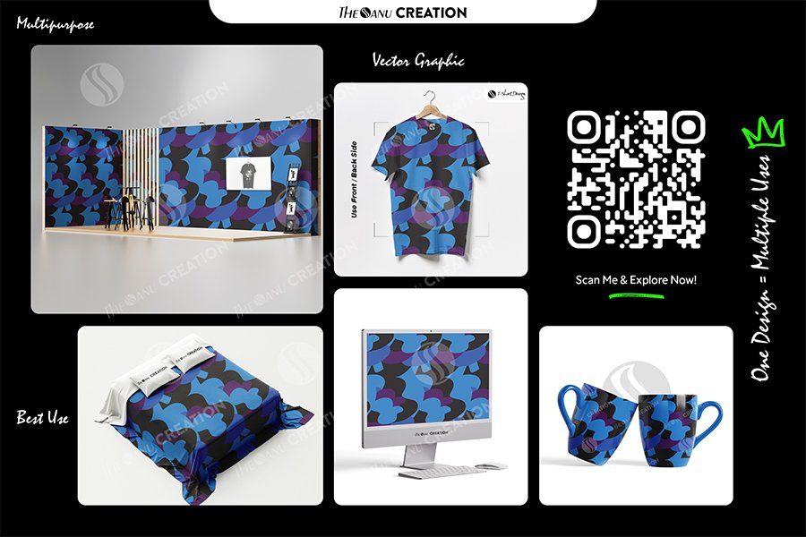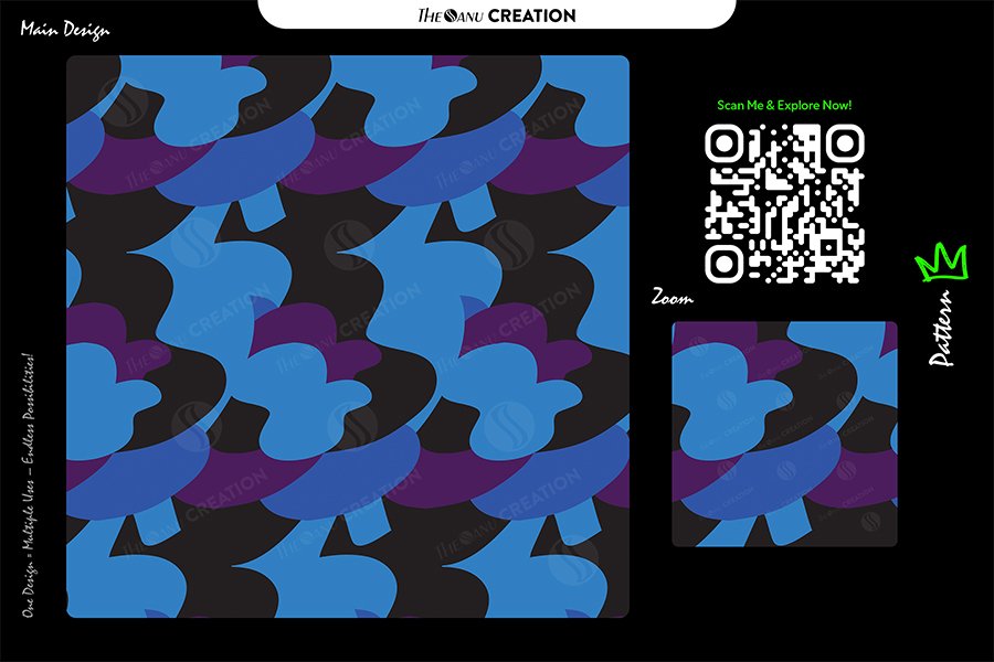 Introducing Midnight Blue Fusion Pattern by THE SANU CREATION — a bold abstract surface system designed to deliver strong contrast and layered visual impact. The combination of vibrant blue tones with deep black and subtle purple accents creates a powerful composition that feels modern, energetic, and visually engaging.