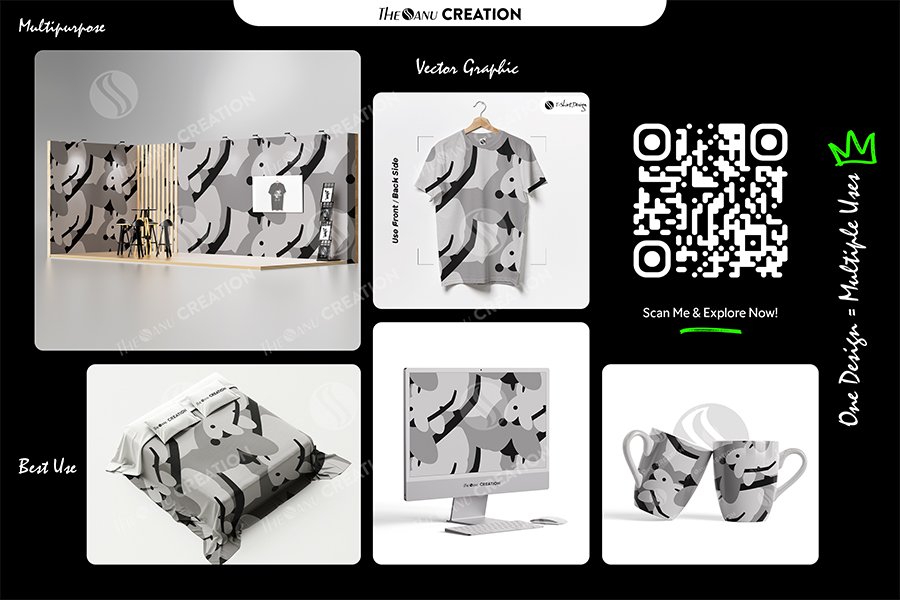 Introducing Monochrome Flow Abstract Pattern by THE SANU CREATION — a refined grayscale vector artwork built with layered organic contours, soft gradient-style transitions, and fluid abstract forms. The neutral black–gray–white palette creates a clean and modern aesthetic that effortlessly adapts to multiple professional creative scenarios.