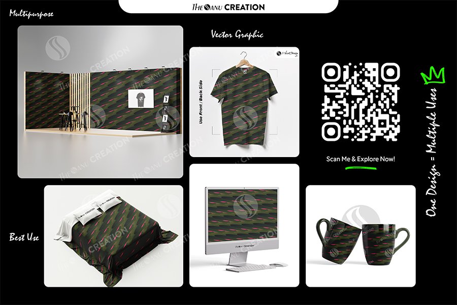 Across professional print environments, the design performs effectively on packaging systems, stationery programs, textile materials, merchandise, wallpaper, corporate collaterals, and large-format installations. The vector structure maintains clean definition and tonal balance, supporting stable production across varied material surfaces.