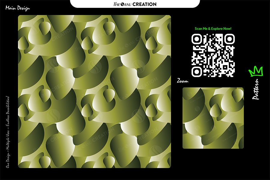 A seamless abstract surface featuring layered olive and moss-green spiral crest forms arranged in a structured diagonal repeat system. Developed to establish organic depth, sculpted curvature, and balanced geometric continuity for modern branding systems and professional surface applications.