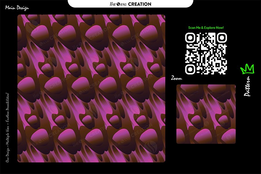 The contrast between warm bronze undertones and vibrant plum highlights delivers a bold luxury aesthetic suitable for brands and creators seeking expressive yet refined abstract surfaces. The repeat structure ensures seamless continuity across scaling formats.