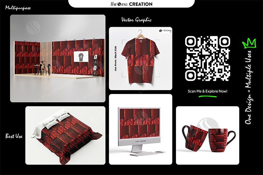 Introducing Red Lava Flow by THE SANU CREATION — a fiery abstract pattern crafted with molten-like strokes and bold vertical structures. The fusion of deep red tones with shadowed gradients creates a strong visual rhythm that feels both raw and powerful.