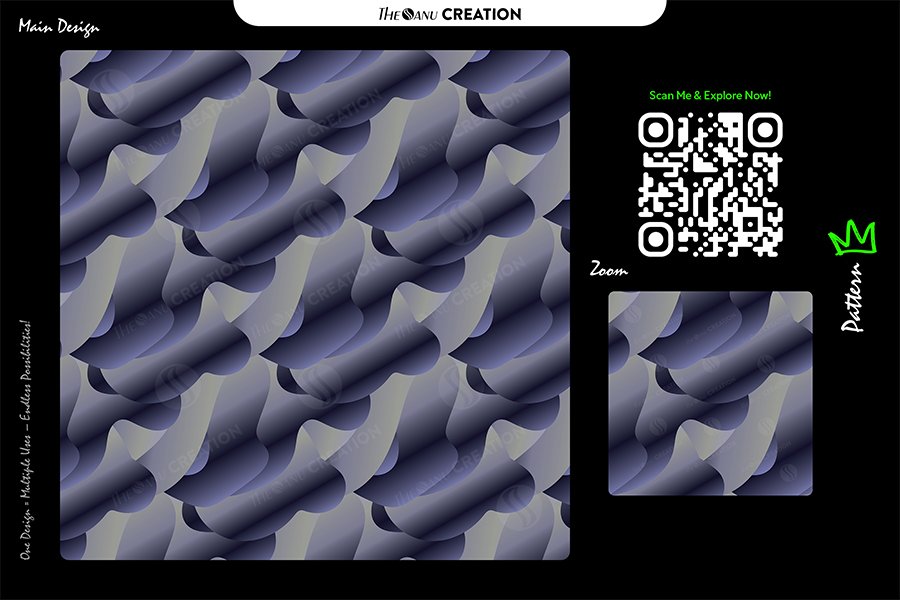 The design emphasizes smooth motion through its layered curved forms, resulting in a seamless pattern that feels fluid and controlled. The gradients enhance dimensional depth while maintaining clarity, offering a sophisticated surface that works across a wide range of creative directions.