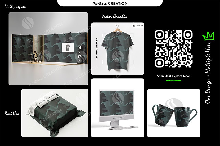 Introducing Slate Teal Edge Flow Pattern Design by THE SANU CREATION — a premium abstract surface system defined by angular flow shapes, muted teal tones, and controlled gradient depth. The composition blends sharp geometric edges with fluid movement, creating a bold and contemporary visual identity.