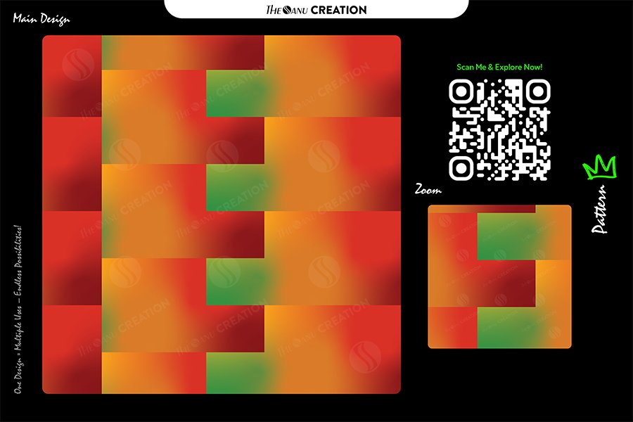 Introducing Soft Gradient Block Abstract Pattern by THE SANU CREATION — a modern geometric artwork built with smooth blended blocks in warm red, orange, and green tones. The design creates a soft yet structured rhythm, enhanced by diffused gradients that add depth and visual harmony.