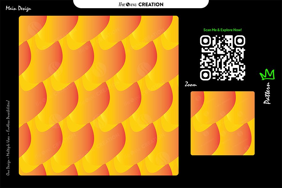 A vibrant composition of overlapping wave forms arranged in a seamless repeat layout across a radiant yellow foundation. The smooth orange gradients create controlled tonal depth while maintaining a clean structural rhythm. The flowing geometry builds continuous surface movement, forming a contemporary abstract design suited for energetic brand environments and high-visibility creative systems.
