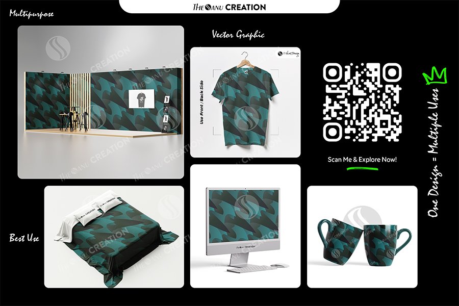 Introducing Teal Sharp Flow Pattern Design by THE SANU CREATION — a premium abstract surface system defined by sharp-edged flowing forms, rich teal tones, and deep gradient layering. The composition blends directional movement with structured alignment, creating a bold and contemporary design language.