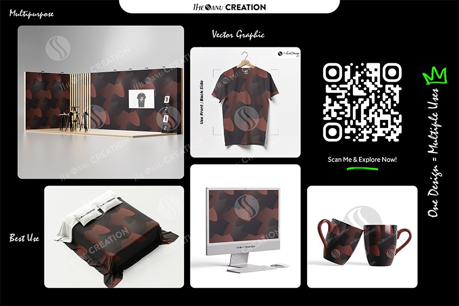 Introducing Terracotta Shadow Flow Pattern Design by THE SANU CREATION — a premium abstract surface system defined by fluid organic forms, warm terracotta tones, and deep shadow gradients. The composition blends soft movement with bold contrast, creating a visually grounded and contemporary design language.