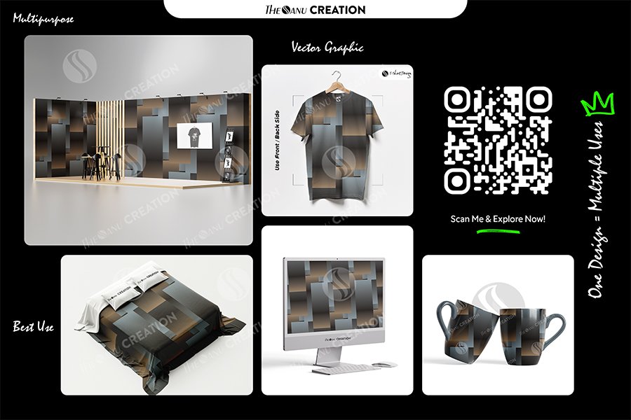 Introducing Urban Bronze Grid by THE SANU CREATION — a seamless abstract vector pattern inspired by modern architecture, industrial symmetry, and urban surface design.