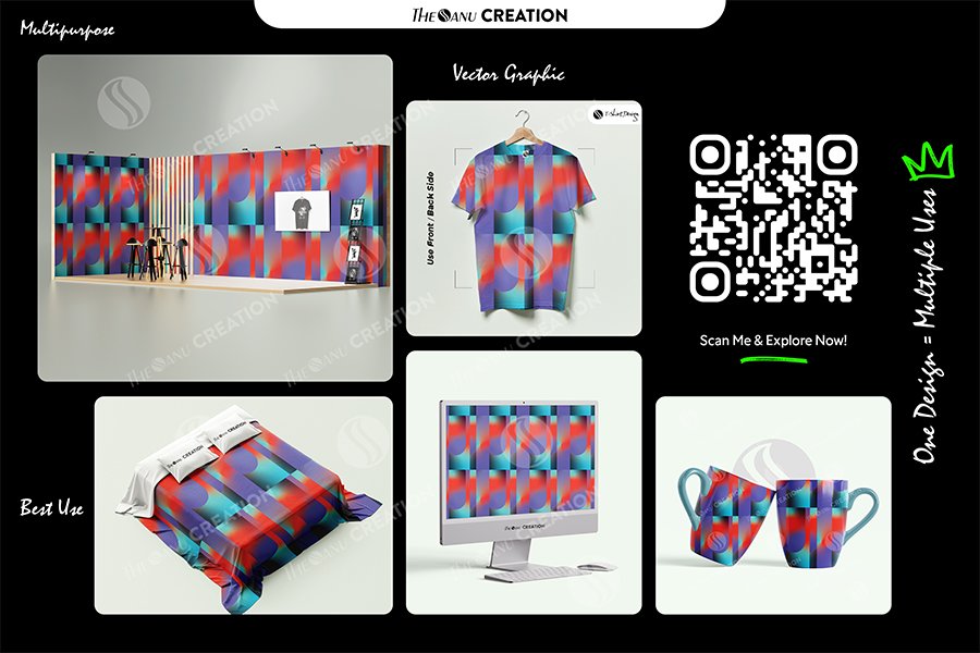 Perfectly optimized for both digital and print applications, this pattern enhances branding, packaging, textile prints, wallpapers, merchandise, editorial layouts, and UI/UX environments. Its glowing color transitions and balanced geometry offer premium versatility for creators seeking a modern, high-impact design asset.