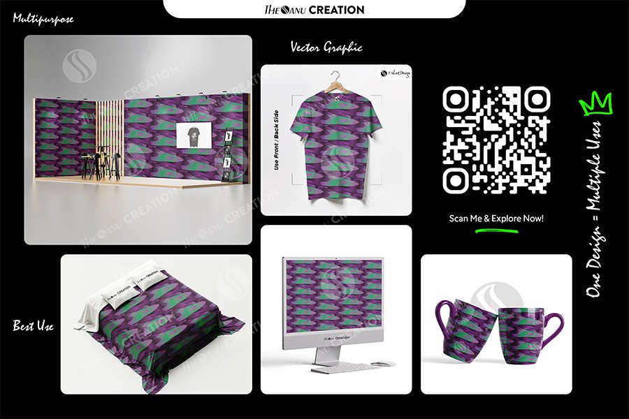 Designed for integration within modern digital ecosystems, this pattern enhances website backgrounds, brand storytelling visuals, campaign graphics, presentation systems, and creative interface environments. The violet and emerald palette communicates innovation, creativity, and bold identity, making it effective for fashion brands, music platforms, gaming environments, creative agencies, nightlife campaigns, and digital-first product launches requiring dynamic visual systems.