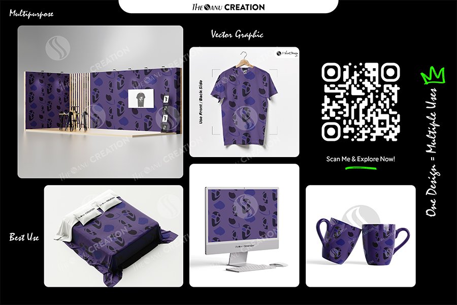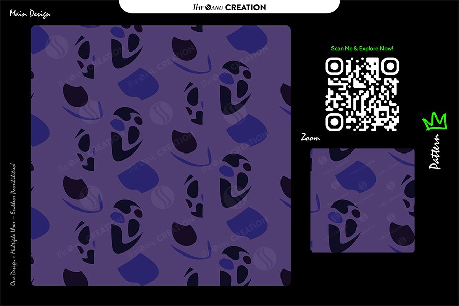The cool violet foundation paired with rich indigo contrast establishes a refined, modern identity suitable for creative brands, lifestyle products, and fashion-forward collections. The repeat alignment ensures smooth visual continuity across scaling environments.